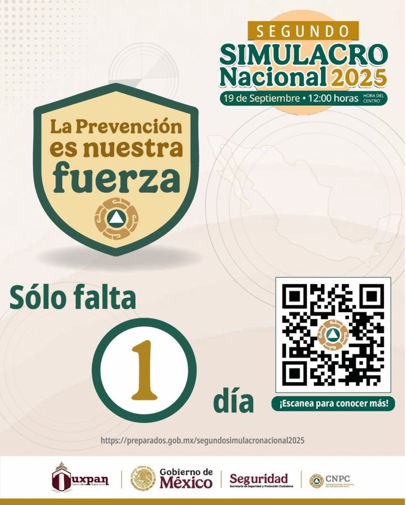 Tuxpan, Ver., 18 de septiembre de 2025. – Mañana es el Segundo Simulacro Nacional 2025 y la hipótesis principal será de sismo. Prepárate con tu familia, comunidad o equipo de trabajo.