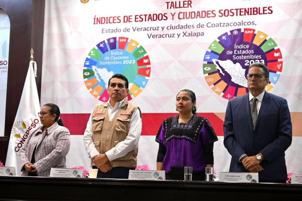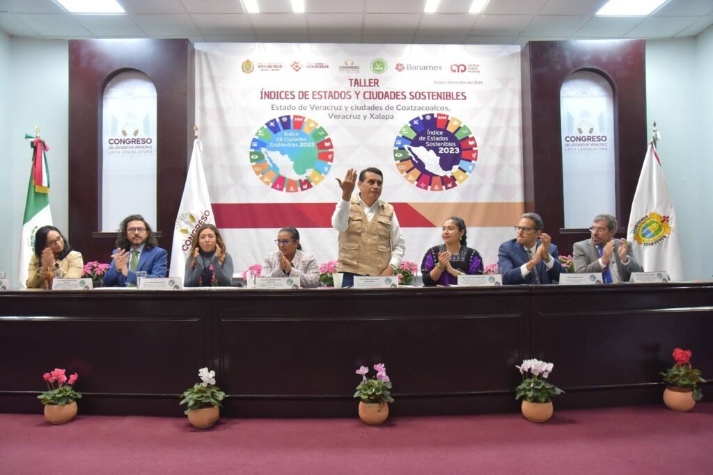 Xalapa, Ver., 12 de noviembre de 2025.- El Congreso de Veracruz contribuye al fortalecimiento del cuidado del medio ambiente, a la reducción de la desigualdad y al mejoramiento del desarrollo urbano y de las condiciones de vida de los más de ocho millones de habitantes del estado, afirmó la presidenta de la Mesa Directiva de la LXVII Legislatura, Naomi Edith Gómez Santos, al inaugurar el taller Índices de Estados y Ciudades Sostenibles, organizado por el Grupo Legislativo del Partido Verde Ecologista de México (PVEM), en colaboración con el Instituto Mexicano para la Competitividad, A. C. (IMCO), la Fundación NovaGob y el Centro Mario Molina.