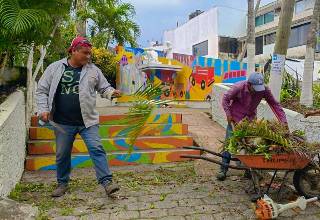 Personal de Parques y Jardines ha trabajado en la limpieza del Callejón del Niño Perdido, Plaza Cívica, áreas verdes de los Infonavit Puerto Pesquero y Reyes Heroles, Jardín de Las Canicas, camellón del bulevar Ruiz Malerva y talud de acceso al puente Tuxpan.