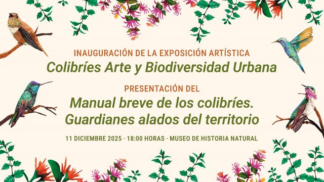 La Secretaría del Medio Ambiente (Sedema) de la Ciudad de México, a través de la Dirección General de Coordinación de Políticas y Cultura Ambiental (DGCPCA), presenta en el Museo de Historia Natural y Cultura Ambiental (MHNCA) la exposición “Colibríes, arte y biodiversidad urbana”, del 12 de diciembre de 2025 al 12 de abril de 2026 de martes a domingos de 10:00 a 17:00 horas. El acceso está incluido en el boleto de entrada al museo.