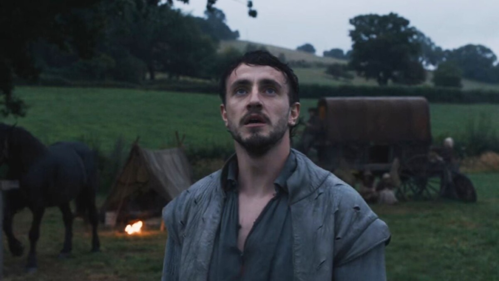 Con técnica naturalista, rayana en el panteísmo arrobado de un Terence Malick (patente en sus obras de autor como “Días de cielo”, “La delgada línea roja”, “El árbol de la vida” o “El Nuevo Mundo”, donde se expresa un dios incontenido a través de sus criaturas, y cuyo medio es la cámara del cineasta, que juega a manera de su evangelista), Zhao abre la narración con una Agnes (Jessie Buckley) llevando un vestido rojo, sucio, contrastándolo con el verde de los helechos, el gris retorcido de las gruesas raíces de los portentosos y añosos árboles, y el ocre de la tierra del bosque en el cual se mueve, en estado casi feraz. Agnes es, en efecto, un ser que se mueve en dicha superficie, reclamando para sí la herencia de “las mujeres de la familia”, curanderas apegadas todavía a un paganismo moribundo y perseguido. Ahí la encuentra Will (Paul Mescal) el dramaturgo quien, entre la humedad del bosque y la madera de las rústicas construcciones del campo, la amará clandestinamente, hasta que la familia de él se entere cuando ella misma se los haga saber, debido a su embarazo, contraigan matrimonio y, después del nacimiento de la hija mayor, Susanna (Bodhi Rae Breathnach), se vea obligada a dar a luz a Hamnet (Jacobi Jupe) en la casa familiar, y no en el bosque, como fuera su deseo, y donde recibe, así mismo, a la melliza del niño, Judith (Olivia Lynes), que viene al mundo sorpresiva y aparentemente muerta. Seremos testigos de las dudas de Will (sus bloqueos de escritor) y sus arrebatos, como un hecho apenas anecdótico, al intentar trazar un paisaje familiar que, en teoría, se centraría en Agnes, pero que se detiene por momentos en los niños y se separa, volviendo esta mirada más general, hasta desdibujar el personaje de Hamnet, en su busca de un marco más amplio. Y este es el punto flaco del filme, que transmite una sensación de voyerismo del cual somos partícipes involuntarios, pero no de los profundos tormentos de los personajes, ni de esa posible “fuente” del Hamlet literario, que habría tocado tan íntimamente al Bardo de Avon. De hecho, resultan curiosamente más luminosas las escenas correspondientes al Londres isabelino -una ciudad con muelles tambaleantes, sostenidos por tablones-, cuando Will hace recitar, una y otra vez, hasta la delirante, pero, se entiende, doliente perfección a sus actores el pasaje correspondiente al Acto III, Escena 4 de Hamlet: