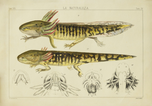 • Velasco realizó estudios minuciosos sobre el ajolote del lago de Santa Isabel, que le valieron reconocimiento internacional