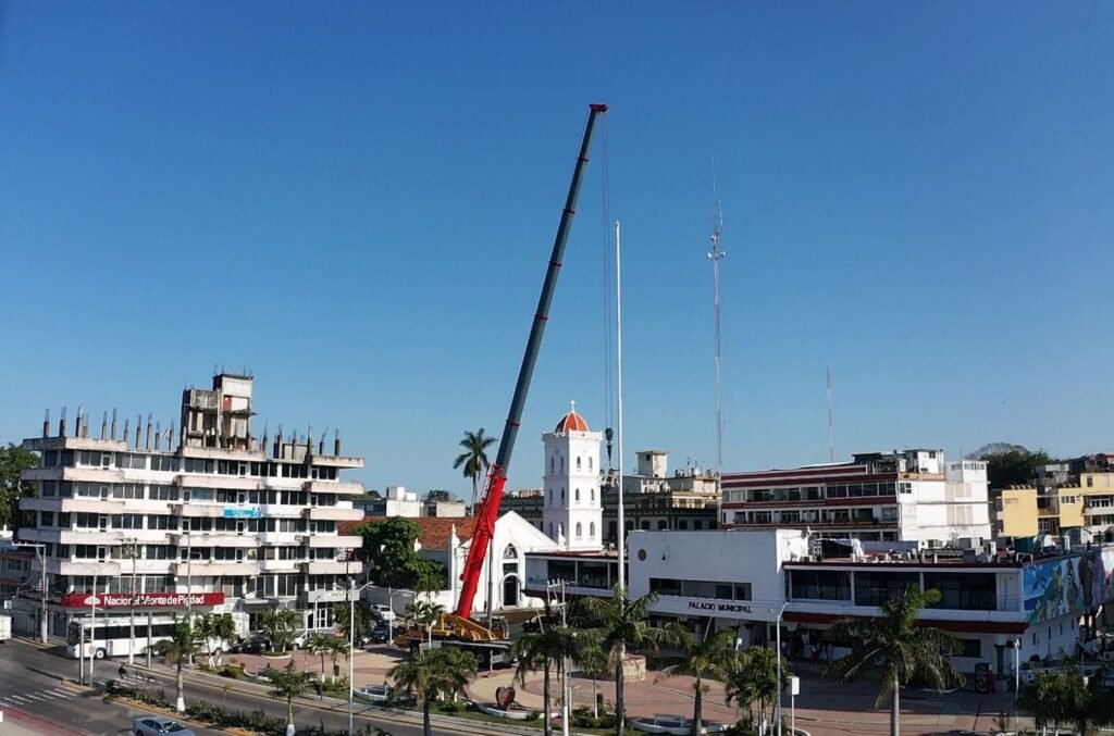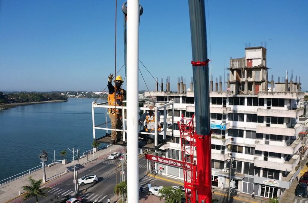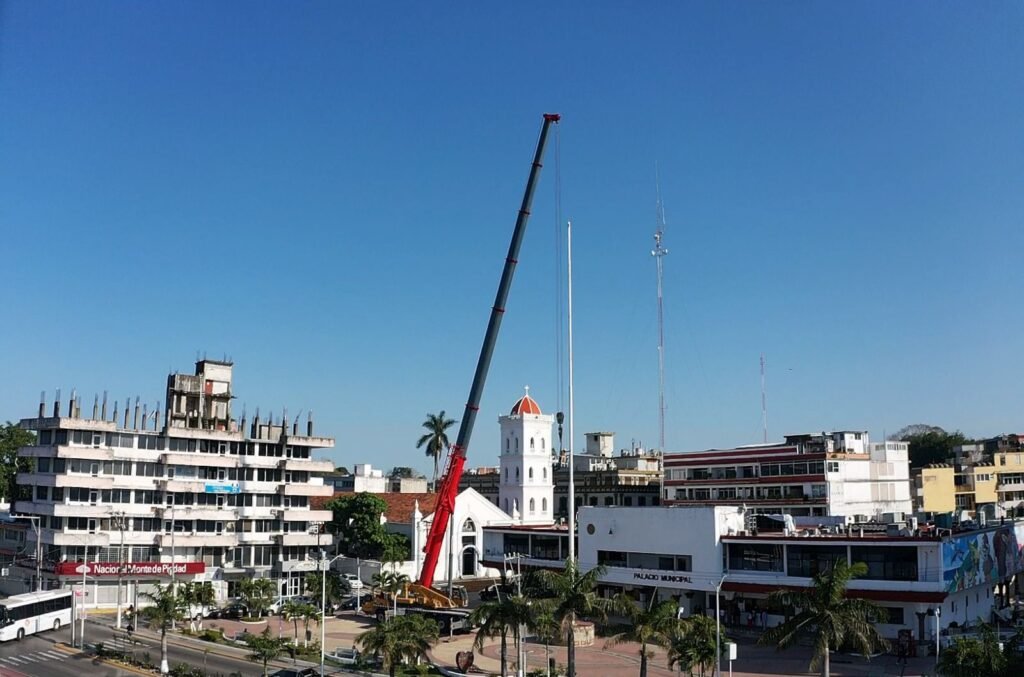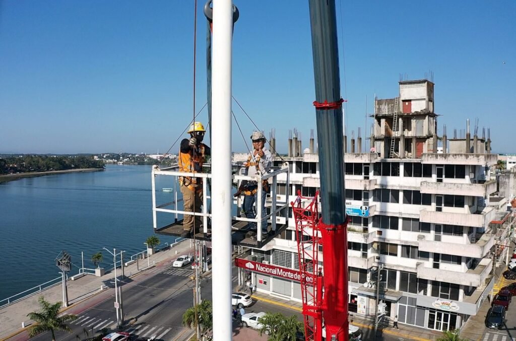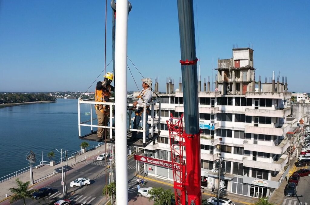 Tuxpan, Veracruz; 16 de febrero de 2026.- Por instrucciones del presidente municipal de Tuxpan, Daniel Cortina, este lunes por la mañana se llevaron a cabo trabajos de mantenimiento en el asta bandera ubicada en la Plaza Cívica Municipal, a un costado de la Presidencia Municipal.